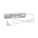Odace - Rallonge multiprises 3 prises 2P+T - blanche/aluminium - 2USB - 1,5m