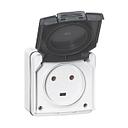 Prise de courant de puissance saillie étanche - 20A - 2 alvéoles - Gris