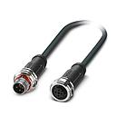 Câble capt./act., 4 pôles, PUR, blindé, M12 mâle droit, M12 fem. droit, A, 0,3 m