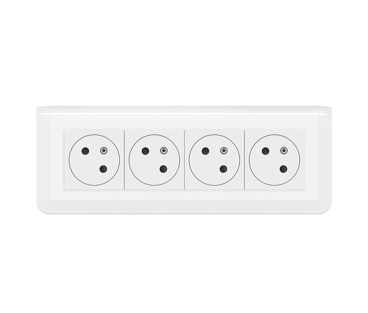 4x2P+T Surface Mosaic Link à 45° précâblée + plaque + boite à encastrer - blanc