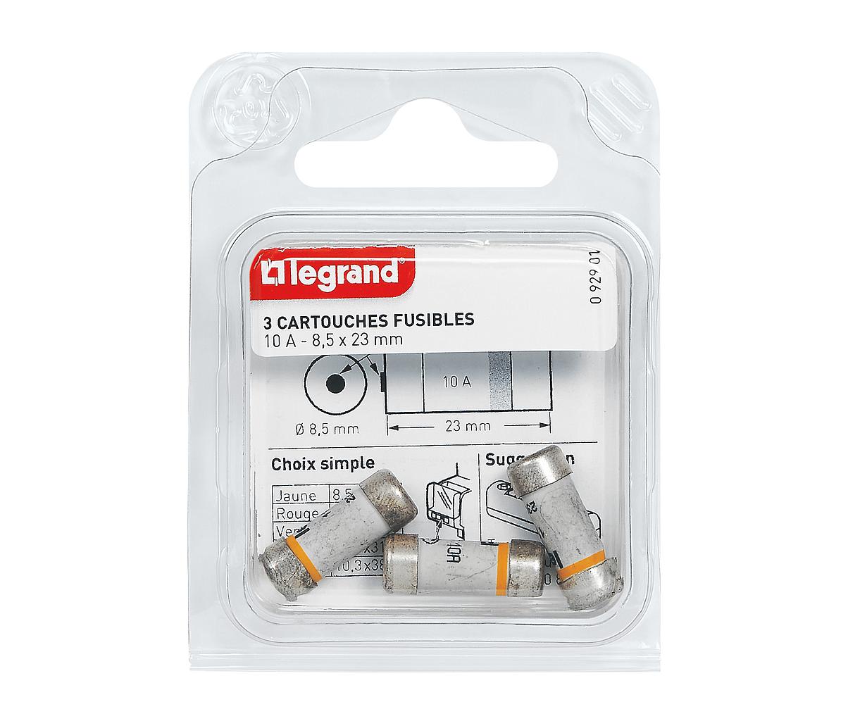 Lot de 3 cartouches fusibles normalisées pour porte-fusibles - avec témoin de fusion 8,5x23mm - 10A 230V~ conforme à la norme NF