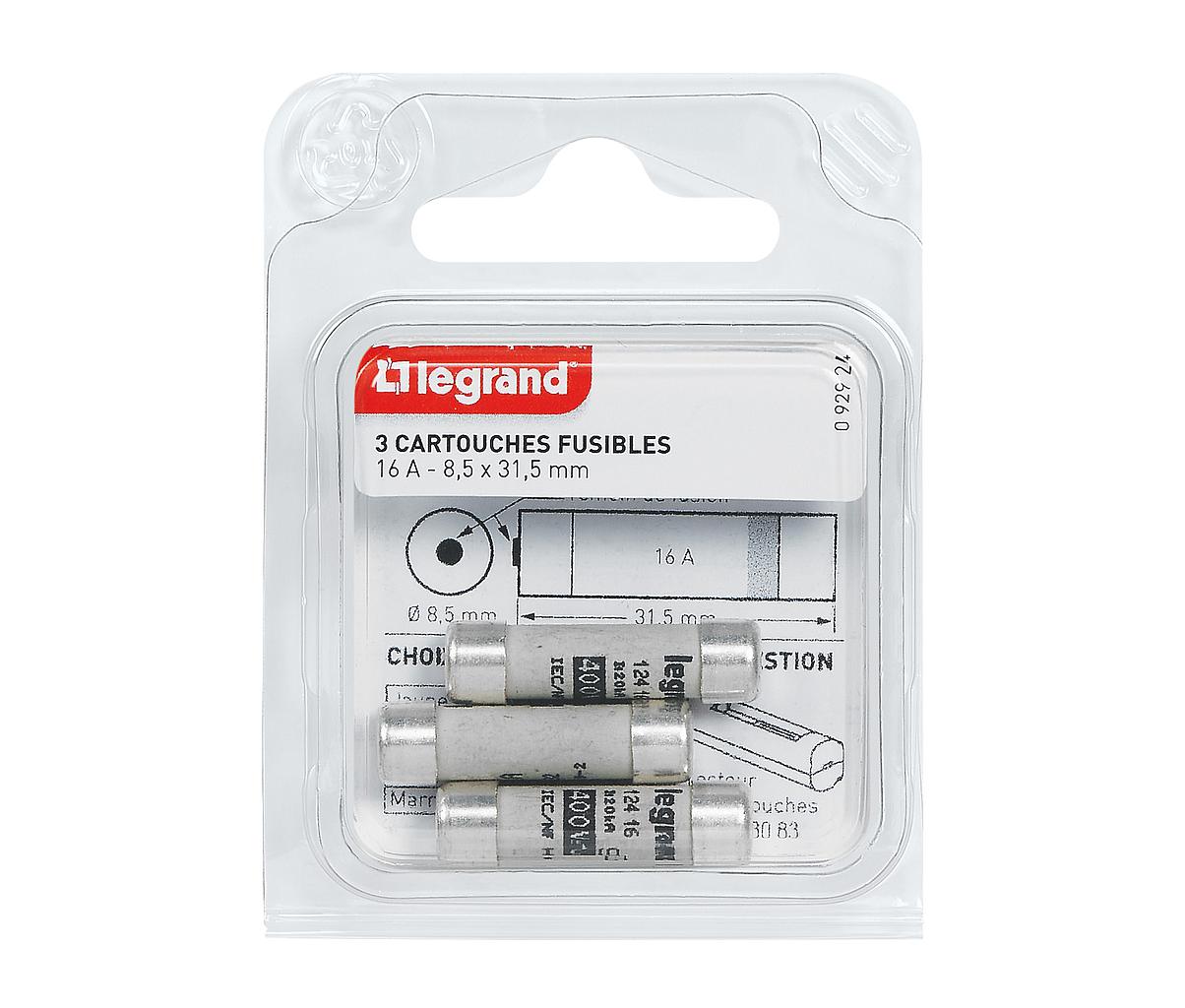 Cartouches fusibles pour porte-fusibles - avec témoin - 8,5x31,5mm - 16A