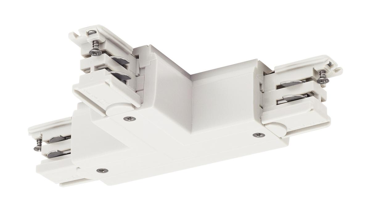 Connecteur S-TRACK T, gauche, terre intérieure, possibilité d'alim, PHASE, blanc