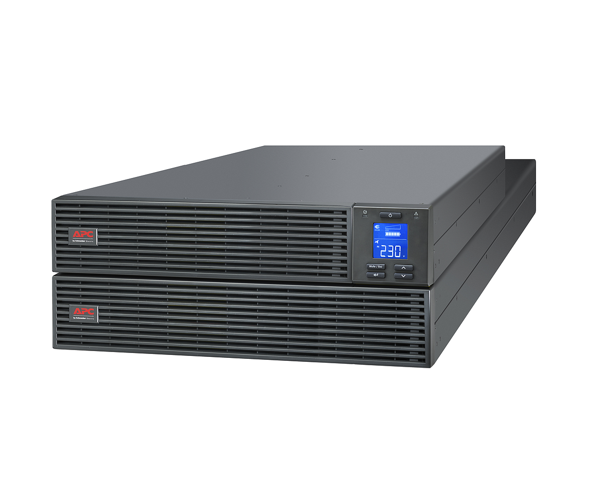 Easy UPS SRV - onduleur on-line double conversion Rackable - 6kVA - avec batterie intégrée - livré sans kit Rack et avec module batterie -E/S borniers phase + neutre - 230V - USB - RS232 - bypass - LCD - autonomie 12min
