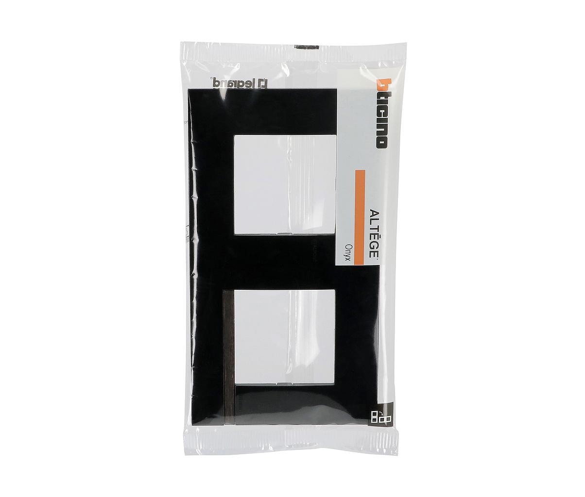 Plaque Altège Déco 2 postes Onyx - noir brillant avec liseré bois foncé
