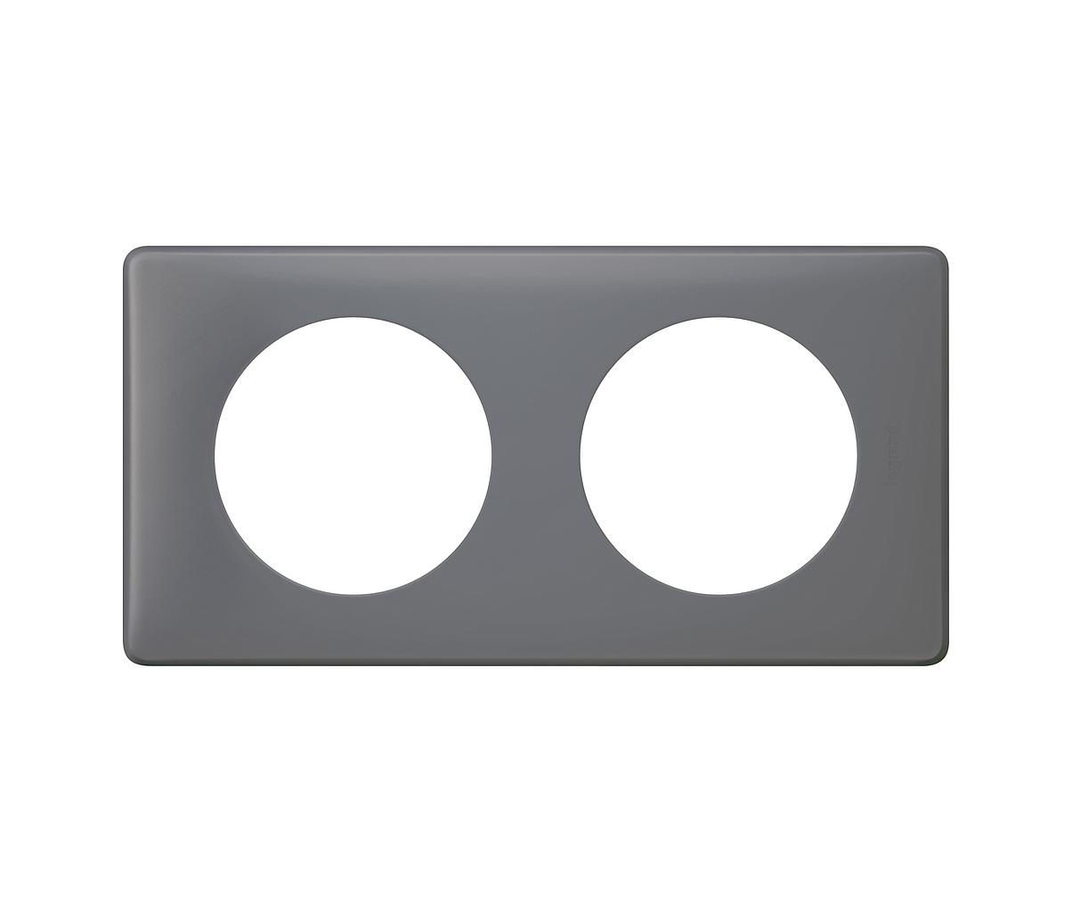 Plaque de finition 2 postes Céliane Poudré pour montage horizontal ou vertical - finition Schiste - pour montage de 2 fonctions Céliane avec support